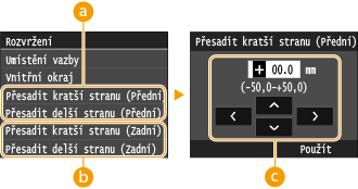 <Přesadit kratší stranu (Přední)>/<Přesadit delší stranu (Přední)>