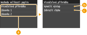 Vyberte možnost <Vynutit výstup> nebo <Zobrazit chybu>