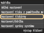 ![]() Dostupnost nastaveníVšechna nastavení tiskárny popsaná v tomto oddíle kromě nastavení <Změna velikosti papíru> (Změna velikosti papíru) jsou dostupná pouze pro tisk PS/PCL. Zadávání těchto nastavení není nutné například při tisku pomocí ovladače tiskárny UFR II.