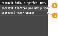 Nastavte, zda chcete na obrazovce Vzdálené uživatelské rozhraní nebo Toner Status zobrazit tlačítko umožňující přístup na web pro nákup tonerových kazet. Nastavte také, zda chcete použít Toner Status.