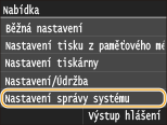Možnosti Nastavení časovače Běžná nastavení Nastavení tisku z paměťového média Nastavení tiskárny Nastavení správy systému Inicializovat vše