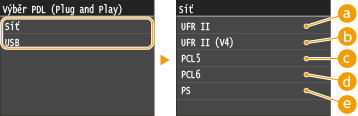 Vyberte jazyk popisu stránky tak, aby bylo zařízení rozpoznáno jako tiskárna kompatibilní s daným jazykem, je-li připojeno k počítači přes rozhraní USB.