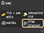 Na obrazovce Domů klepněte na <Přímé připojení>. Tiskárna se přepne do stavu, kdy k ní budete moci připojit mobilní zařízení.