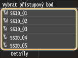 Klepněte na tlačítko <Detaily> a vyberte směrovač bezdrátové sítě LAN. Na původní obrazovku se vrátíte dvěma klepnutími na tlačítko <Zavřít> a stisknutím tlačítka