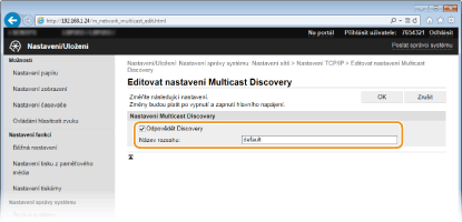 Klikněte na tlačítko [Editovat] v části [Nastavení Multicast Discovery].