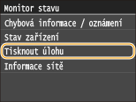 ![]() <Stav tiskové úlohy>Zobrazí seznam dokumentů, které se zpracovávají nebo čekají na zpracování.