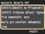 Toto nastavení určí, zda se mají tisknout poznámky v souboru PDF.