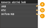 Můžete vybrat způsoby převádění hodnot barev na hodnotu stupňů šedé pro tisk dat barev.