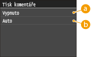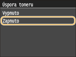 Klepnutím na <Zapnuto> se bude tisknout v režimu úspory toneru. Když chcete před konečným zadáním tisku velkého objemu zkontrolovat rozložení stránky nebo další vzhledové charakteristiky, vyberte možnost <Zapnuto>.