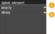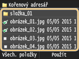Způsob zobrazení můžete změnit z možnosti <Detaily> (názvy souborů a data úprav) na <Obrazy> (náhledy). Díky náhledu obrázků můžete před výběrem souboru k tisku zkontrolovat obsah souboru.