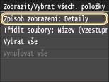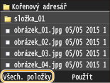 Pokud jste před klepnutím na tlačítko <Všech. položky> vybrali soubor, můžete vybrat jen soubory stejného formátu.