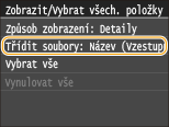 Můžete vybrat konkrétní nastavení řazení, například <Název (Vzestupně)> nebo <Datum/Čas (Vzestupně)>, a zadat je jako výchozí nastavení řazení souborů.