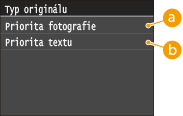 Můžete vybrat typ předlohy v závislosti na obrázku, který chcete vytisknout. Vyberte možnost <Priorita fotografie> nebo <Priorita textu>.