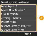 . Změníte-li tato výchozí nastavení podle často prováděných operací, nebudete muset provádět stejná nastavení při každém tisku.