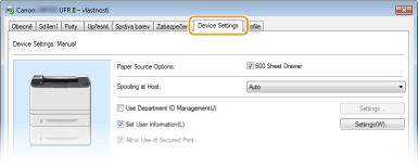 Zaškrtněte políčko [Use Department ID Management] (Použít správu ID oddělení) a klikněte na tlačítko [Settings] (Nastavení) nacházející se vpravo vedle políčka.