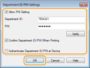 Zaškrtnutím políčka zobrazíte místní obrazovku [Potvrdit ID oddělení / PIN] při každém tisku z počítače.