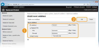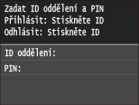 Pokud je pro ID oddělení nastaven kód PIN, zadejte číslo obsahující maximálně sedm číslic.