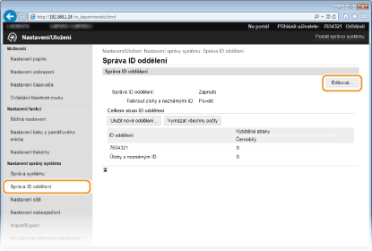 Úpravy můžete provést po kliknutí na příslušný textový odkaz v části [ID oddělení].
