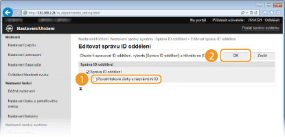 [Confirm Department ID/PIN When Printing] (Potvrdit ID oddělení/kód PIN při tisku)