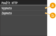 Protokol HTTP se používá při komunikaci přes síť, například pokud přistupujete k zařízení prostřednictvím Vzdáleného uživatelského rozhraní. Pokud používáte připojení přes rozhraní USB nebo z jiného důvodu protokol HTTP nevyužíváte, můžete komunikaci HTTP zakázat, a tím blokovat škodlivé útoky třetích stran, které mohou být vedeny přes nevyužité porty HTTP.