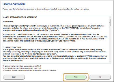 Olvassa el a licencszerződést, és ha elfogadja, kattintson a [Yes] gombra.