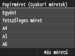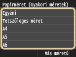Ha a papír behelyezésekor nem jelenik meg a fenti képernyőHa mindig ugyanolyan papírt helyez a többcélú tálcába, akkor kihagyhatja a papírbeállítási műveleteket, ha a papírméretet és -típust bejegyzi alapértelmezett beállításként. Ha az alapértelmezett beállítás be van jegyezve, akkor viszont a fenti képernyő nem jelenik meg. A képernyő megjelenítéséhez válassza a <Megadás a papír betöltésekor> lehetőséget (A többcélú tálca alapértelmezett papírméretének bejegyzése).