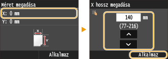 Írja be az <Y> oldal hosszát, majd érintse meg az <Alkalmaz> gombot.
