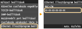 Ha a készüléket kapcsoló hubhoz vagy hídhoz csatlakoztatja, akkor előfordulhat, hogy a helyesen konfigurált IP-cím ellenére csatlakozási hiba lép fel. A probléma úgy hárítható el, hogy beállít egy bizonyos időtartamot, ameddig a készülék nem kezd el kommunikálni. Hálózati csatlakozás előtti várakozási idő beállítása