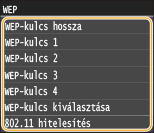 Ha a biztonsági beállítások nincsenek konfigurálva, akkor a <Semmi> jelzés jelenik meg.