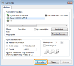 [Eszközök] [Nyomtatás] a használt nyomtató koppintson vagy kattintson a [Nyomtatás] gombraHa ezzel a módszerrel nyomtat, csak korlátozott számú nyomtatási beállítás érhető el.