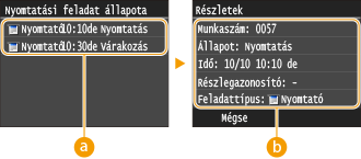 ![]() <Nyomtatási feladat állapota>Megjeleníti a feldolgozás alatt lévő, illetve feldolgozásra váró dokumentumok listáját.