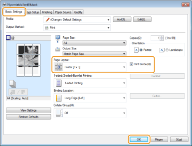 Jelölje be a [Print Border] (Nyomtatási keret) jelölőnégyzetet, ha a nyomtatott lapokon keretet szeretne megjeleníteni. A keretek segítséget nyújtanak a nyomtatott lapok egymáshoz illesztésekor és a margók levágásakor.