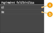 Ha egy dokumentumot számítógépről nyomtat ki, akkor sok nyomtatási beállítást – például a példányszámot vagy az egyoldalas/kétoldalas nyomtatást – megadhat a dokumentum létrehozására használt alkalmazásban vagy a nyomtató-illesztőprogramban. Az alább ismertetett <Papírméret felülbírálása> beállítás azonban csak a készüléken állítható be.