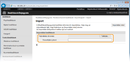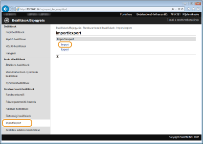 Betöltheti (importálhatja) a készülékről exportált adatokat. Másik készülék beállításait is importálhatja, ha a típusa megegyezik az Ön készülékének típusával.