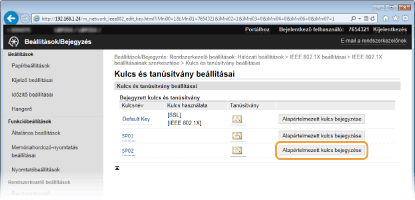 Kattintson az ügyfél-hitelesítéshez használni kívánt kulcspártól jobbra látható [Alapértelmezett kulcs bejegyzése] parancsra.