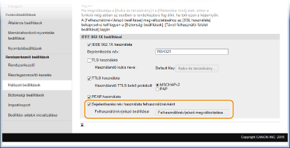 Jelölje be az [IEEE 802.1X használata] jelölőnégyzetet, adja meg a bejelentkezési nevet a [Bejelentkezési név] szövegmezőben, majd adja meg a szükséges beállításokat.