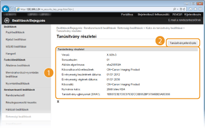 Ellenőrizze a tanúsítvány részleteit, majd kattintson a [Tanúsítványellenőrzés] gombra.