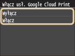 Włącz funkcję Google Cloud Print w urządzeniu. Funkcję Google Cloud Print można również wyłączyć.