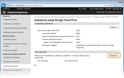 Kliknij element [Zarejestruj] znajdujący się w sekcji [Stan rejestracji].