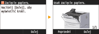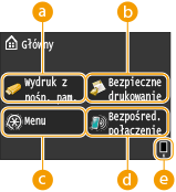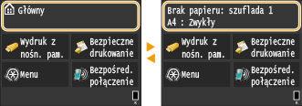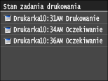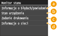 zostanie wyświetlony ekran umożliwiający sprawdzenie stanu drukowanego dokumentu, a także stanu urządzenia (ilości pozostałego toneru w kasecie z tonerem itp.) lub danych dotyczących ustawień sieciowych, takich jak adres IP urządzenia.
