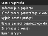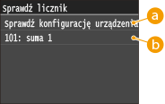 ) zostanie wyświetlony ekran <Sprawdź licznik>. Na tym ekranie zostaną wyświetlone liczniki wydruków, a także numer seryjny urządzenia i jego konfiguracja.