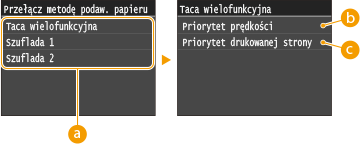 Papier), do źródła będzie miało zastosowanie ustawienie <Priorytet prędkości>. W tym wypadku należy załadować papier w sposób odpowiedni dla ustawienia <Priorytet prędkości> (