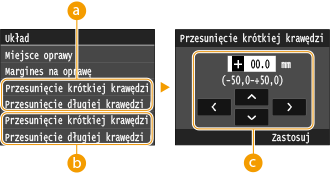 <Przesunięcie krótkiej krawędzi (przód)>/<Przesunięcie długiej krawędzi (przód)>