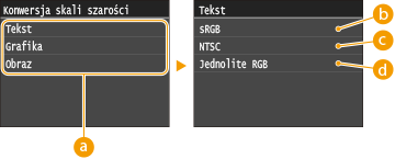W tej części opisano ustawienia konwersji kolorów na dane skali szarości.