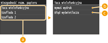 Wybierz opcję <Wymuś wydruk> lub <Błąd wyświetlacza>