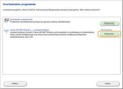 Kliknij przycisk [Rozpocznij] w narzędziu [Canon MF/LBP Wireless — asystent instalacji].
