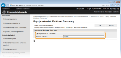 Kliknij element [Edycja] znajdujący się w sekcji [Ustawienia Multicast Discovery].