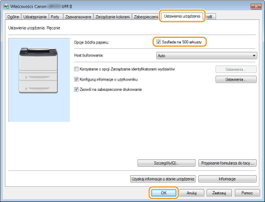 Zaznacz pole wyboru [Szuflada na 500 arkuszy]