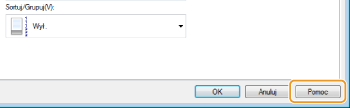 Do ekranu Pomoc można przejść przez kliknięcie opcji [Pomoc] na ekranie sterownika drukarki. Ekran ten zawiera szczegółowe informacje, które nie znajdują się w podręczniku Instrukcja e-Manual.