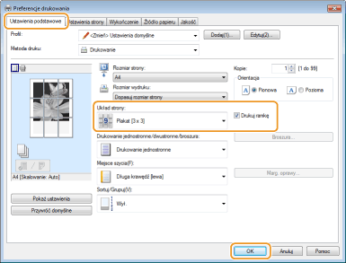 Wybierz opcję [Drukuj ramkę], aby dodać ramki do wydruków. Ramki są pomocne przy sklejaniu wydruków lub obcinaniu marginesów.